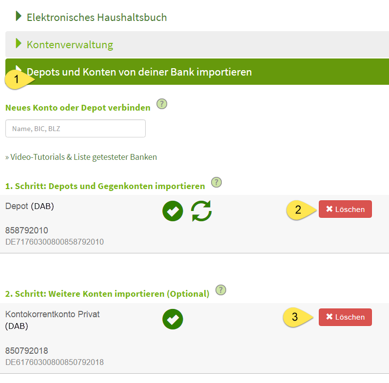 Hinweis: Da sich das Transaktionsformat zwischen beiden Banken leicht unterscheidet ist eine Übernahme zuvor eingepflegter Transaktionen leider nicht möglich. Die Transaktionsdaten werden in den nächsten Schritten erneut synchronisiert. Zuvor eingepflegte Dividenden bleiben erhalten!