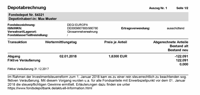 Achtung, genau lesen: Depot-Schreck droht! (Fiktiver Fonds-Verkauf/Kauf im Rahmen der Investmentsteuerreform)