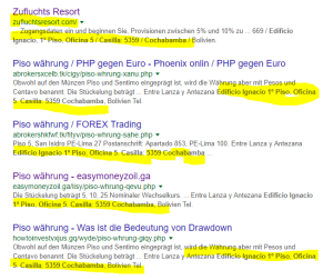 Unter der genannten Adresse finden sich auch diverse Cryptocurrency-Broker und zwielichtige Firmen – siehe Bild: