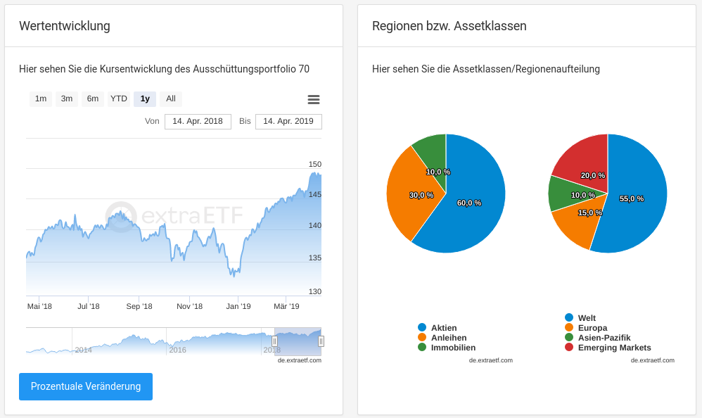 extraETF stellt für Sie zudem Wissenstexte und umfangreiche Ratgeber zur Anlage mit ETFs bereit. Auch ETF-Musterportfolios, umfassende Testberichte und Gebühren-Vergleiche zu den Themengebieten ETF-Sparpläne, Depotvergleich und Robo-Advisors stehen Ihnen zur Verfügung. Die Nutzung der Website ist kostenfrei.