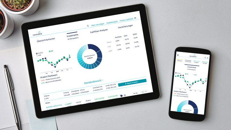 In vielen Fällen lohnt es daher, sich nach modernen Alternativen umzuschauen. So bietet Ihnen z.B. der Rentablo Finanzmanager eine komfortable Online-Lösung zur Verwaltung Ihres kompletten Vermögens. Durch die Verwendung modernster Schnittstellen-Technologie ist ein Import fast aller Konten und Depots möglich. So werden Sie zu Ihrem „Do-it-Yourself“ Finanzberater.