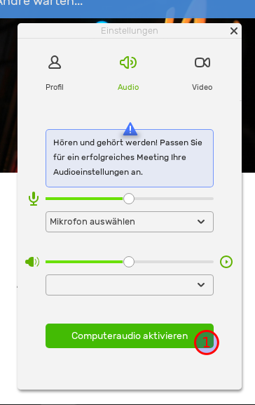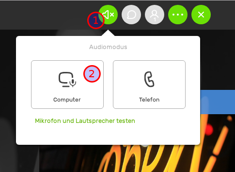 Bitte wählen Sie zum Start den Audiomodus „Computer“.