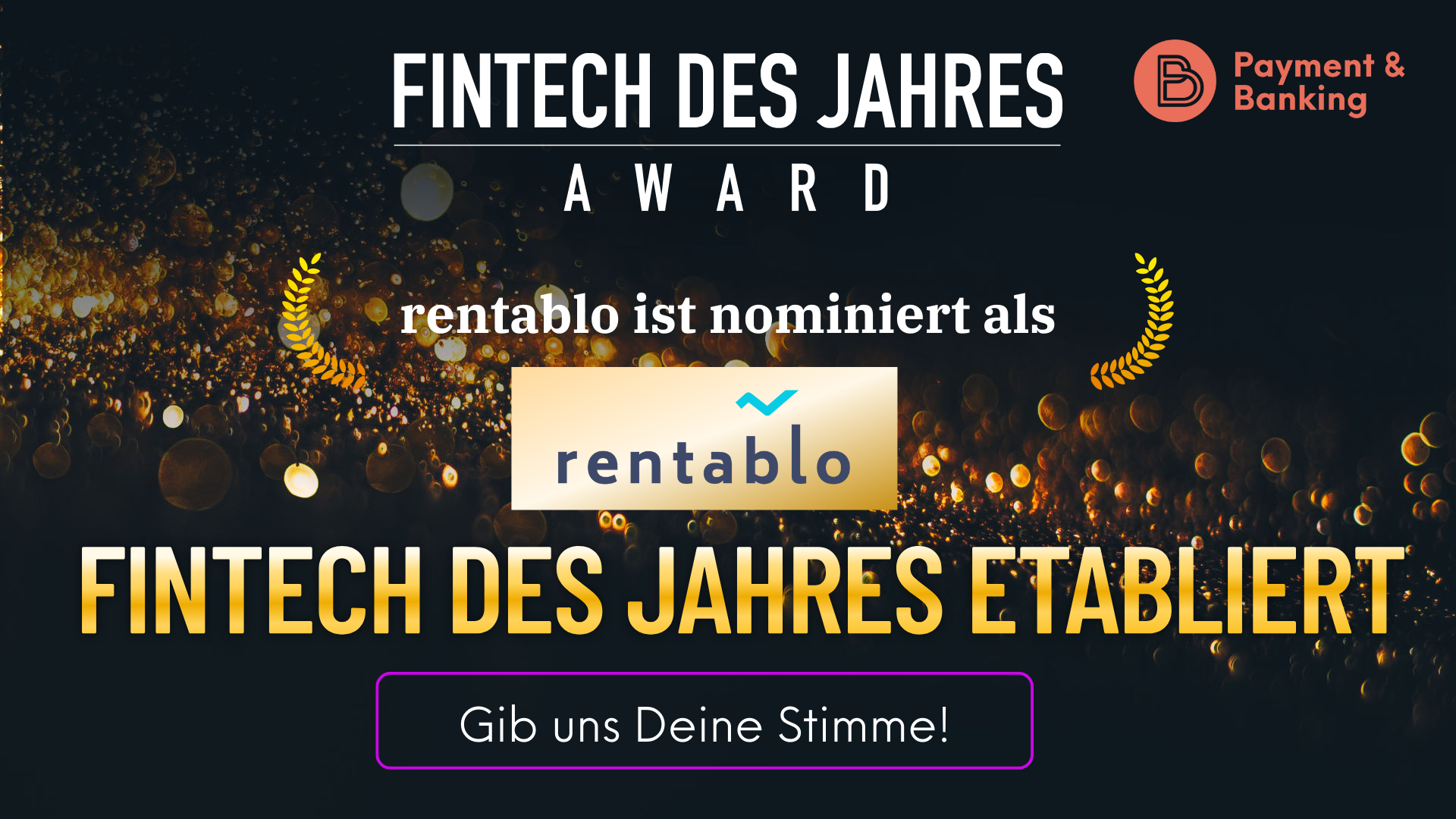 Das renommierte Branchenmagazin „Payment & Banking“ vergibt erneut die Auszeichnung „Fintech des Jahres“. Rentablo als Fondsdiscounter und die Muttergesellschaft wealthAPI als Entwickler u.a. des Finanzmanagers sind nominiert! Sie können uns...